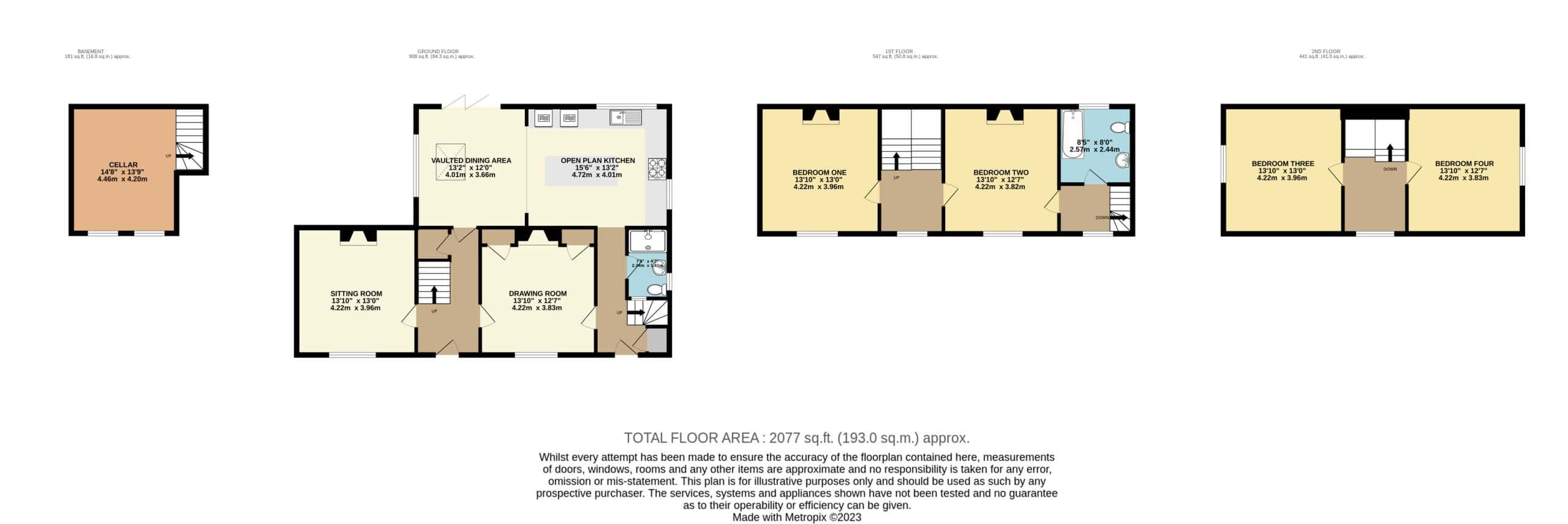 While we endeavour to maintain accurate photographs, floor plans, and descriptions, these are intended as a guide and purchasers must satisfy themselves by personal inspection. Fixtures and fittings are to be agreed with the seller. Total floorplan measurements have been rounded for ease and distances are also provided as an approximate. The services, systems and appliances listed within our specifications have not been tested by us and therefore provide no guarantee to their operating ability or efficiency.